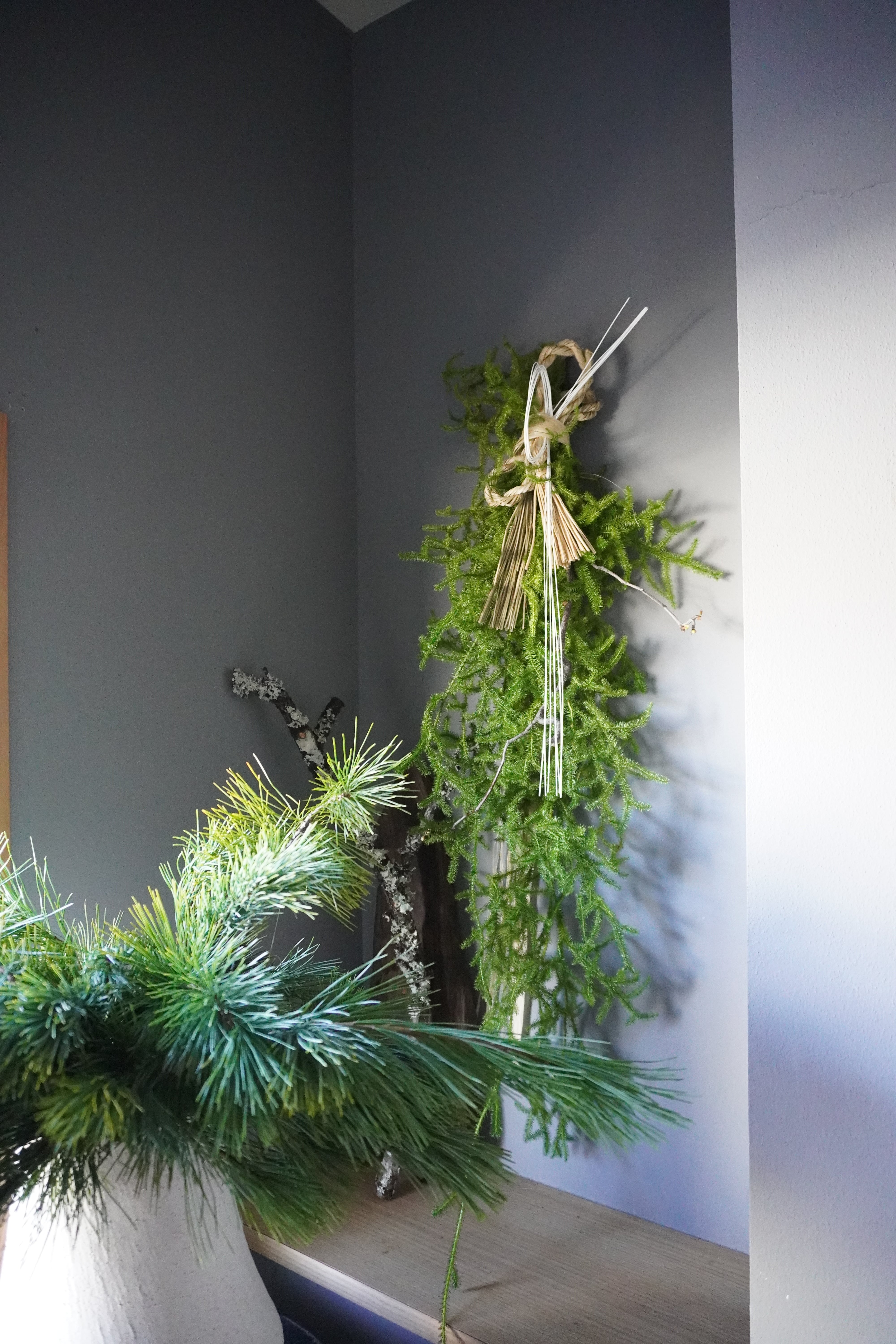 しめ縄には清らかな結界の意味を、雲龍梅には力強い生命力と吉兆を、精麻には場を清める力を込め、静かでありながらも芯のあるお正月飾りに仕立てました。